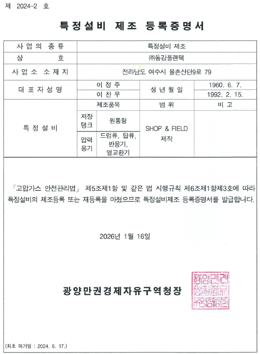 특정설비 제조업